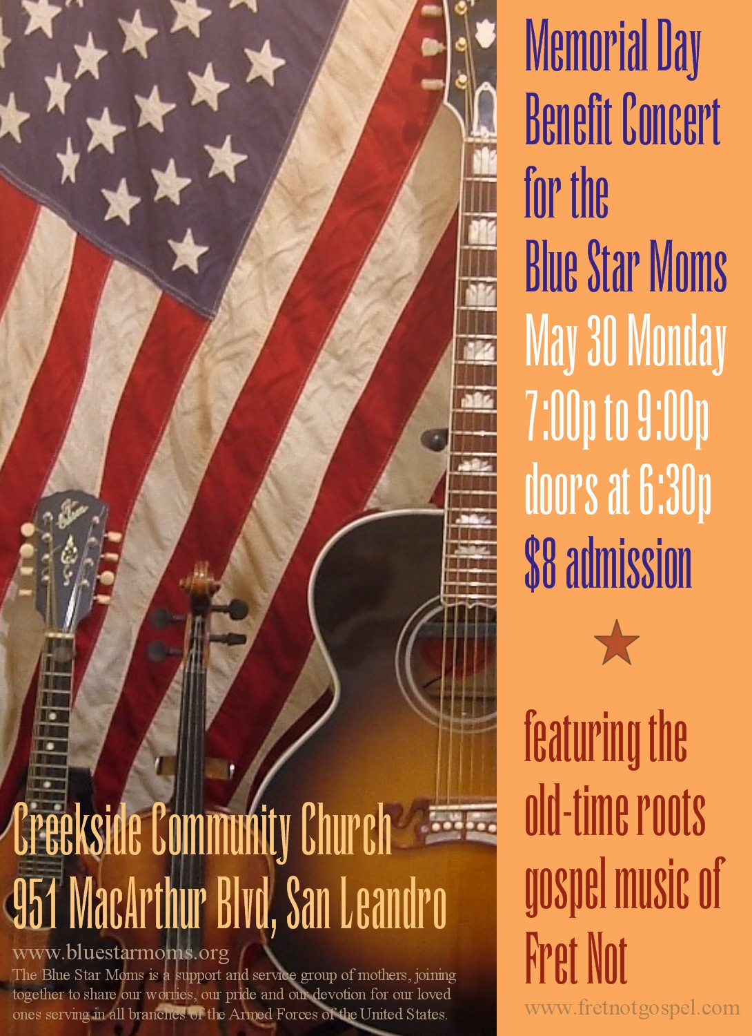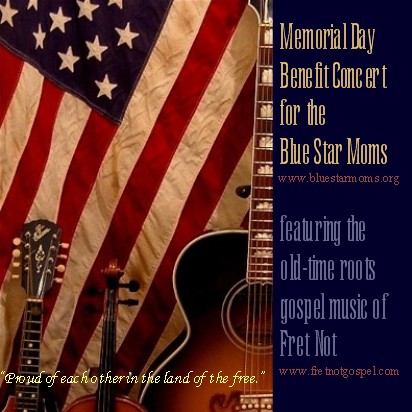 | This CD is of a benefit concert that our church hosted for the Blue Star Moms. We hope that we were able to honor and encourage the Blue Star Moms, as is right to do, not only by fund raising but especially by filling the church auditorium with well-wishers who support them and their cause in prayer and with gratitude. The speakers were retired RADM Paul K. Arthur, who flew out from New Mexico, and Deb Saunders, president of the Blue Star Moms. Our music was an acoustic old-time gospel set and a change-of-pace electrified alt-rock set. We hope it is clear that from the heart of the San Francisco Bay Area, we are among the many who whole-heartedly support our country's military personnel and their noble cause to secure us from our enemies by bringing freedom to the people of the Middle East.. |