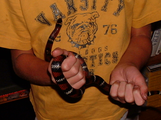 "Billie" the California Mountain Kingsnake She eats little frozen "pinkies" |