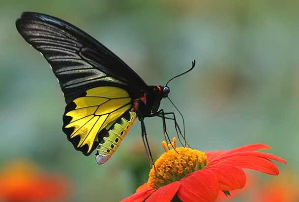| Wildlife Indonesia has more different kinds of animals than anywhere in the world. It has everything from the Priam's birdwing butterfly to the Borneo pygmy elephant. There are clouded leopards, Asian elephants, pygmy buffalo, small hairy rhinos, bandicoots, mutjaks, orang-utans, tapirs, tigers, and wild pigs. Those are just some of the 500 known mammal species in Indonesia. Indonesia also has the largest lizard in the world, the Komodo dragon, growing up to ten-feet long, found on a small island called Komodo. One-thousand five-hundred species of birds live in Indonesia, including giant hornbills, cassowaries, and 40 species of birds-of-paradise. There also are giant sea turtles. Researchers recently found a new mammal that looks like a cross between a kangaroo rat and a fox. They only caught it on film for a few seconds and still don't know what it is. Indonesia has what I think is the world's most beautiful butterfly, the paradise birdwing. There are also many other beautiful butterflies including the goliath birdwing, priam's birdwing, wanderer, ulysses swallowtail, delias white, clipper, cruiser, and danis blue. There also is one of the largest moths, the atlas moth. Other insects include leaf insects, giant grasshoppers, katydids, stick insects, and beetles of all kinds. Indonesia probably has the greatest birds of any place. These range from the little green dollarbird to the giant flightless cassowary. They include the red bird-of-paradise, six-wired bird-of-paradise, lesser bird-of-paradise, sulfur-rested cockatoo, rainbow lorikeet, arfak astrapia, kokokan heron, sulawesi hawk eagle, blue-winged kukabura, argus pheasant, rhinoceros hornbill, and many more. Plants Ten percent of all plant species are in Indonesia. The trees include palms, sandalwood, oaks, ebony, camphor, and many others. There are ferns, orchids, bamboo, and the largest flower in the world, the rafflesia. It grows from a plant that has no leaves only a line of roots inside a woody vine. The rafflesia flower weighs twenty pounds. Art and Music Textile making is a very popular art. Batik is a kind of textile that is made by drawing on a cloth with dye resistant wax and dipping the cloth in dye. The wax is scraped off and leaves a dyeless pattern. Some batik makers stamp the wax on instead of drawing it on. There are other ways of making cloth that are often used. They include ikat, where dye-resistant fibers are used instead of wax. For a long time, squares of cloth were used for money on one island. Puppet shows are another popular form of art. Most are shadow puppet shows. These are done by a man moving puppets behind a lighted curtain. The puppets are usually made out of leather and painted. The man also thumps his feet on the floor in a rhythm. Puppet shows often last nine hours or more. Some puppets are three dimensional and these aren't for shadow puppet shows. Some shows are done by people dressed up as puppets. Indonesian dances usually have a purpose. Some tell stories. Some are supposed to drive away evil. Some used to be done by a whole tribe dancing at once. Some dances in Bali are supposed to put people in a trance. Some dances require years of training. A kind of music called gamelan is played mainly with drum-like instruments, including kettles, and brass gongs. Bali probably has the greatest artists but there is no word for are or artist in Bali. |