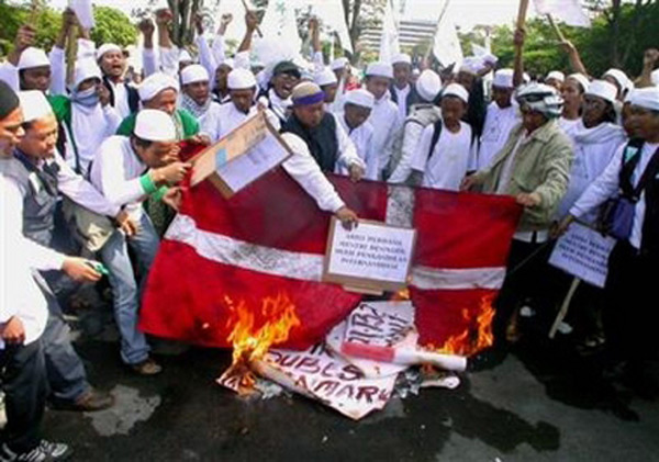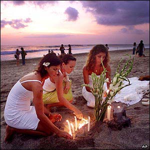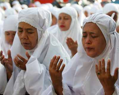 | SECOND IMPORTANT THING ABOUT INDONESIA Most Indonesians are Sunni Muslim. More Muslims live in Indonesia than in any other country. Indonesia law says that there is to be religious freedom and Islamic laws are usually not strict. Most Muslim women wear a hair covering of some sort to show their religion. Some Christian school girls are forced to wear a headscarf. During one month of every year, all Muslims healthy enough do not eat in daylight hours. The month is called Ramadan. They eat before sunrise and after sunset only. One out of ten or eleven Indonesians is a Christian. That means there are about 30 million Christians. The original people who lived in Indonesia and still live in some areas worship spirits and ancestors. Ninety percent of all people on Bali are Hindus, and statues of Hindu gods are everywhere there. Strict Muslim Rules Even though there are usually not strict Muslim laws, some places, especially the big cities, do have them. Here are some examples: Picky Rules - A coming law in Aceh says that theives will have their hands cut off. Muslim police will not allow women to be out after dark alone or carry lipstick. Secular Entertainment - Mrs. Daratista is a singer and dancer of the Indonesian equivalent of country music. She is criticized by Muslims because some of her dance moves look like what they call pornography. The Muslims call it "porno-action". Mr. Irama and Mr. Tanjung are two Indonesian Muslim men who stirred up a riot of their followers over Mrs. Daratista's "pornography". The Muslims had the government not allow her to be on television. Still she has many supporters. One of them painted a picture of her with an audience of strict Arab Muslims. Christian Conversions - Even though Indonesia's five priciple rules set called Pancasila allows any religion of one god, Christians are still being put in prison. For example, three women are in prison for having a Christian child care program. They have been in prison since May 2005. Many people in Indonesia are worried about the rise of strict Islam |