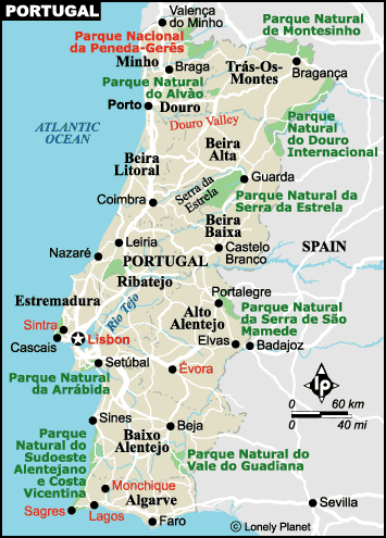 | Tell me about Portugal. Portugal is on the very west side of Spain on the Atlantic Ocean. It is small country about the size of the State of Florida. There are also Portuguese islands called the Madeiras and the Azores well off the coasts of Portugal and Morocco. Portugal has 10 million people. In the northeast there are mostly mountains. It rains 110 inches in the mountains each year. In the south there are hot plains called the Algarve. In the west there are mostly coastal plains. In the southeast there are also mostly plains. Plains are good for growing grass and good for growing wheat because it is a kind of grass. So most of the land is farms. The main cities are Lisbon, Oporto, Setubal, Coimbra, and Sintra. Lisbon is the largest city and is the capital. The Douro River runs through it. Oporto is a big wine storage city and the Tejo River goes through it. There is a big Moorish castle in Sintra. The others rivers are the Sado, Minho, Guardiana, and the Mondego. In 1755, there was a very big earthquake that flattened Lisbon. In 1340 there was a plague from rats that killed one out of three people in Portugal. Why is there so much wildlife in Portugal? There is a lot of wildlife in Portugal because there are many parks where there are forests. It is different than in Morocco because the people have cut down almost all of the forest in Morocco. The islands of Madeiras and the Azores also have a lot of wildlife because they are tropical and have only farming there. Madeira means "wood" because the island is heavily forested. What is an armillary sphere? It is a navigational tool with circles made out of metal that are lined up with the sun, stars and the moon. It tells your location it was not accurate. The Portuguese made them better. They have an armillary sphere pictured on their flag. Once the more accurate sextants and chronometers were invented, people quit using armillary spheres. |